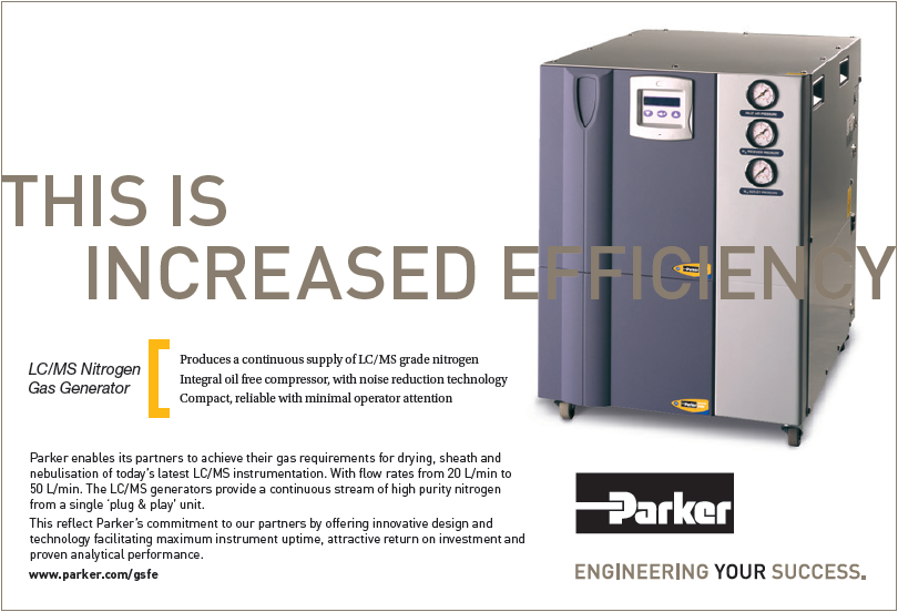 Parker Domnick Hunter 針對(duì)LC/MS 氮?dú)饬髁俊⒓兌?、壓力的特殊要求專門設(shè)計(jì)了安全、高效、方便的專用于LC/MS 氮?dú)獍l(fā)生器,產(chǎn)生純度> 99% 的潔凈、干燥氮?dú)?,完全兼容Waters、Agilent/Varia、 AB Sciex、Thermo/Finnigan、Shimatzu、Bruker 等品牌液質(zhì)連用 APCI 及ESI 接口。 氮?dú)獍l(fā)生器采用變壓吸附技術(shù)(PSA)產(chǎn)生氮?dú)?,碳分子篩自動(dòng)再生, 無(wú)須二次凈化,即可連續(xù)獲得潔凈、干燥、無(wú)鄰苯二甲酸酯的氮?dú)?,? 氣純度和流量穩(wěn)定,使用壽命長(zhǎng)。 模塊化集成無(wú)油壓縮機(jī)提高了空氣供應(yīng)的安全性,無(wú)需依賴外來(lái) 壓縮氣源。流速范圍從15 L/min 到50 L/min 多種型號(hào)可選,可同時(shí) 為一臺(tái)或多臺(tái)儀器供應(yīng)氮?dú)狻?/p>